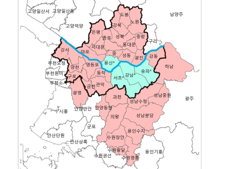 | 조정대상지역·투기과열지구 | 서울 25개 전 자치구(강남·서초·송파·용산은 현행 유지, 나머지 21개구 신규) · 경기 12개 지역(과천, 광명, 성남 분당·수정·중원, 수원 영통·장안·팔달, 안양 동안, 용인 수지, 의왕, 하남) | 10월 16일 | 해당 없음 |
